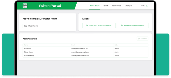 Also on the tenants page, users can invite new clients and employees to the selected tenant.
