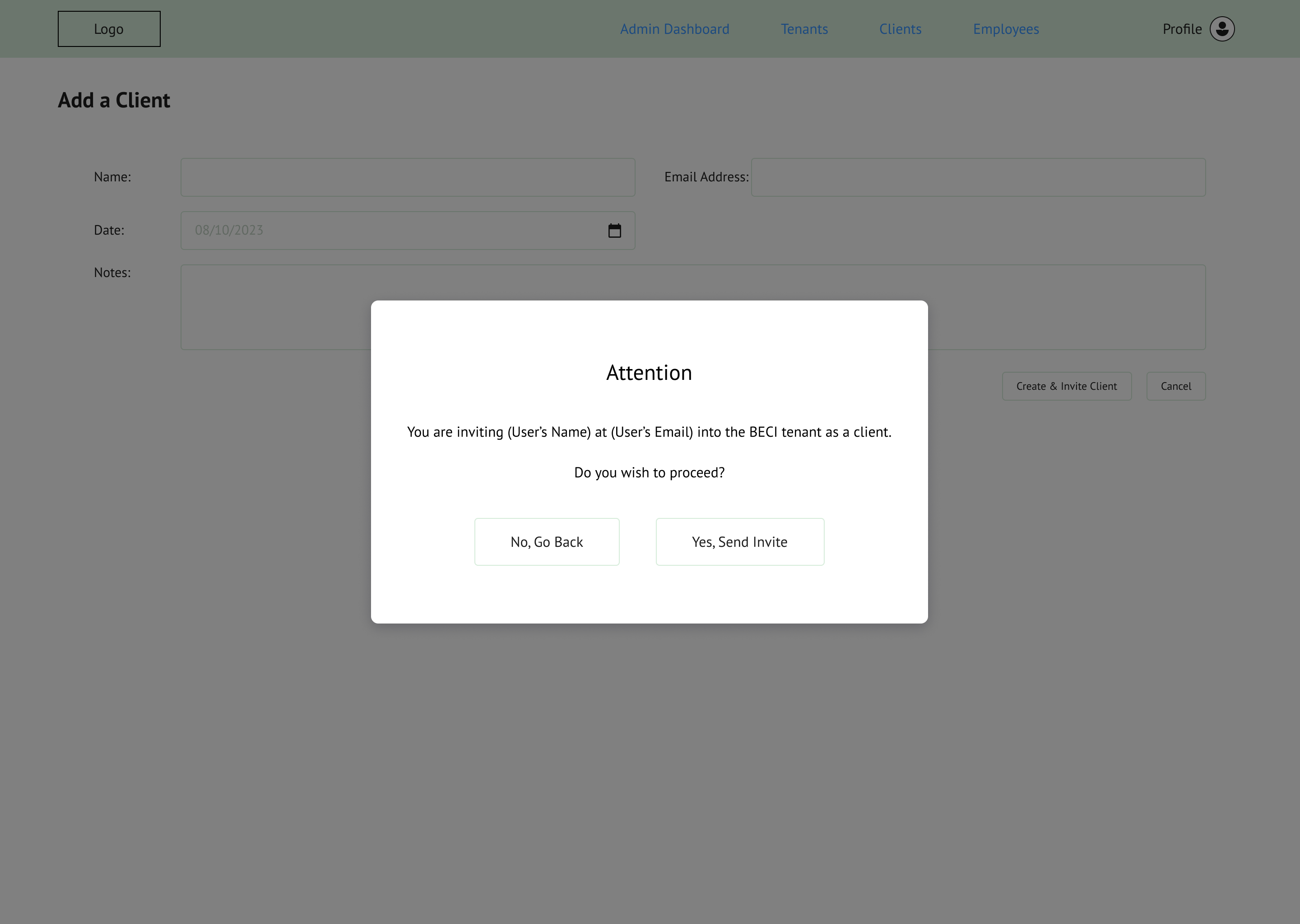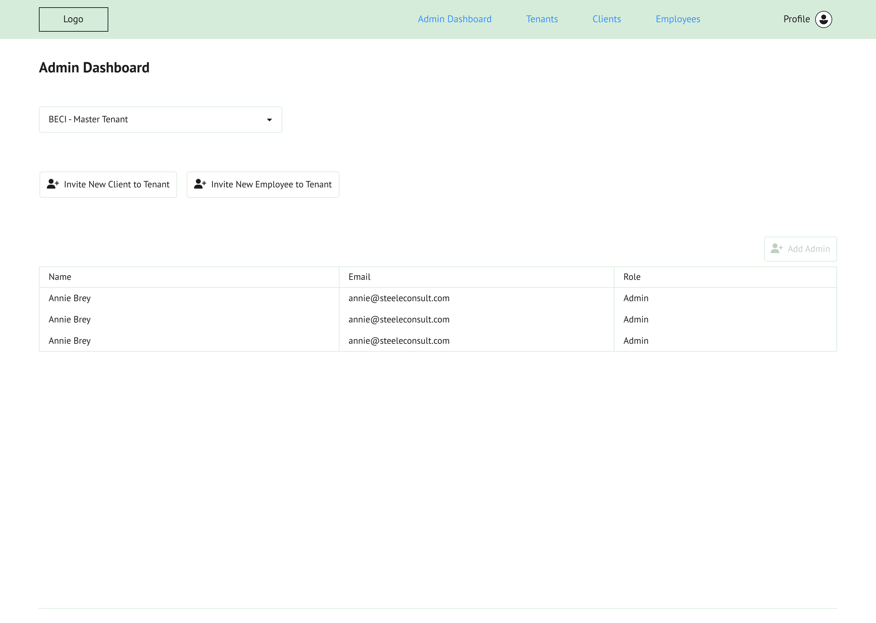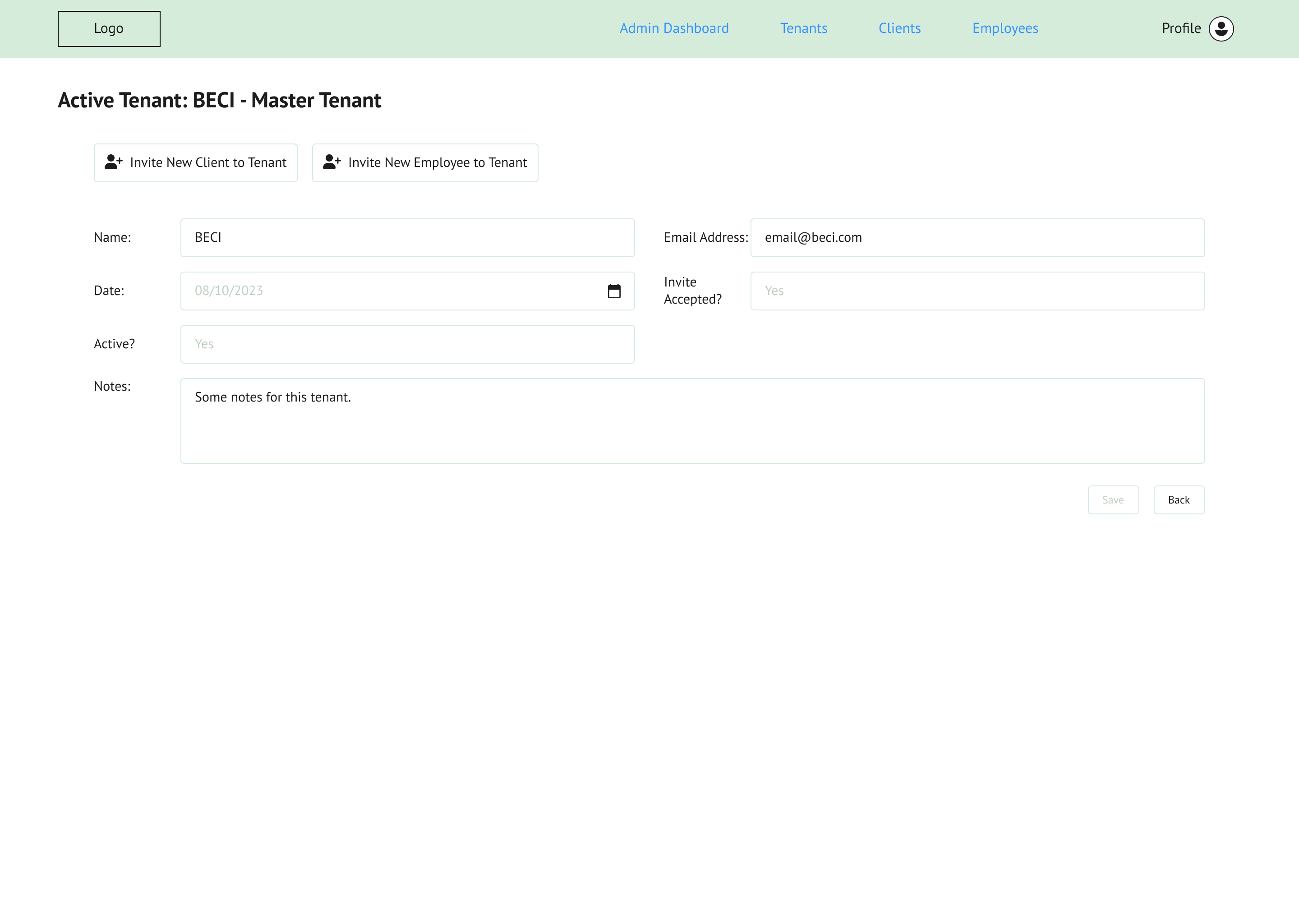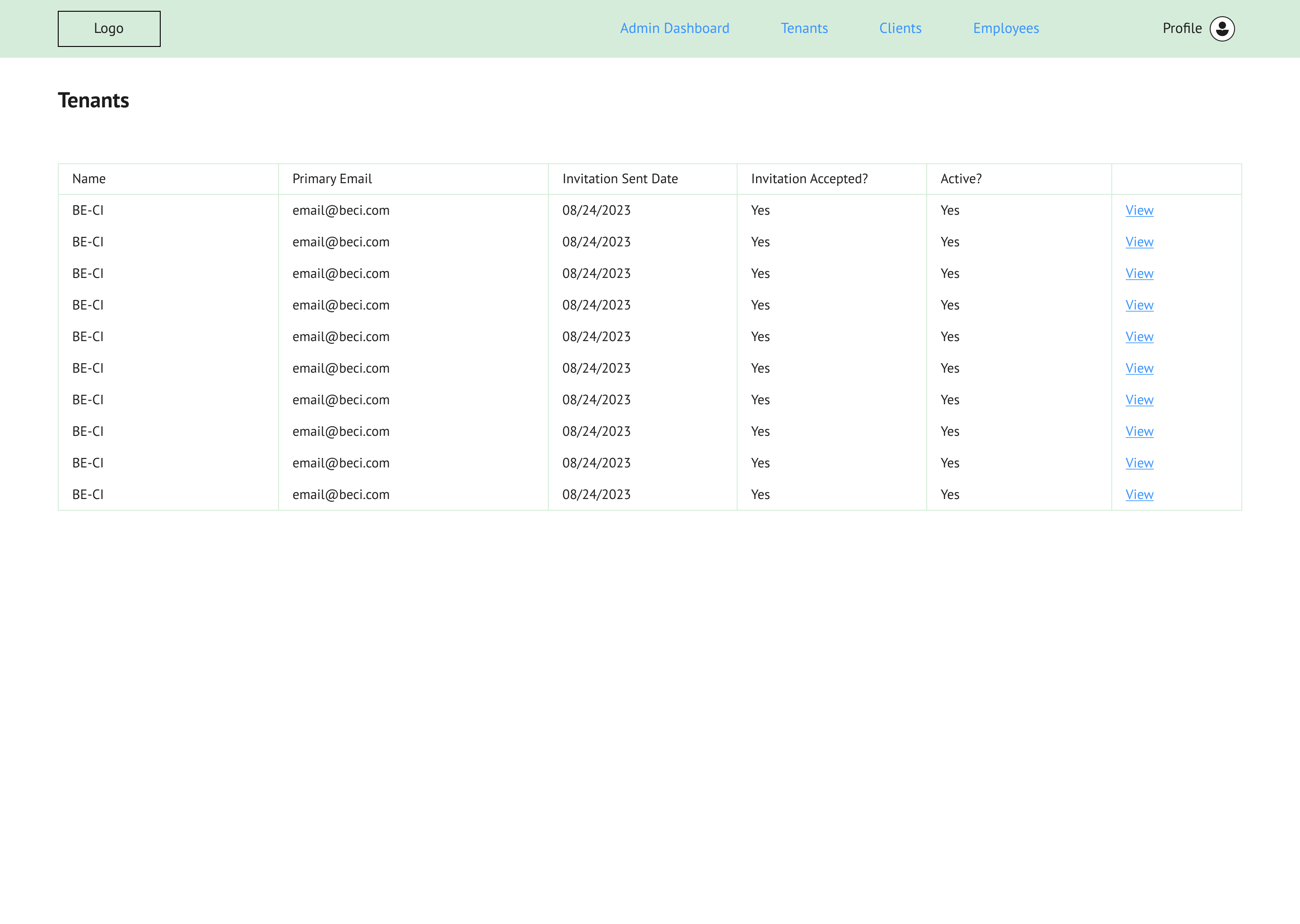 Similarly to the admins, the tenant’s information cannot be edited from the frontend. But like the admins, BECI wanted to be able to edit this information in the future, so I designed a page that will one day allow the information to be edited.