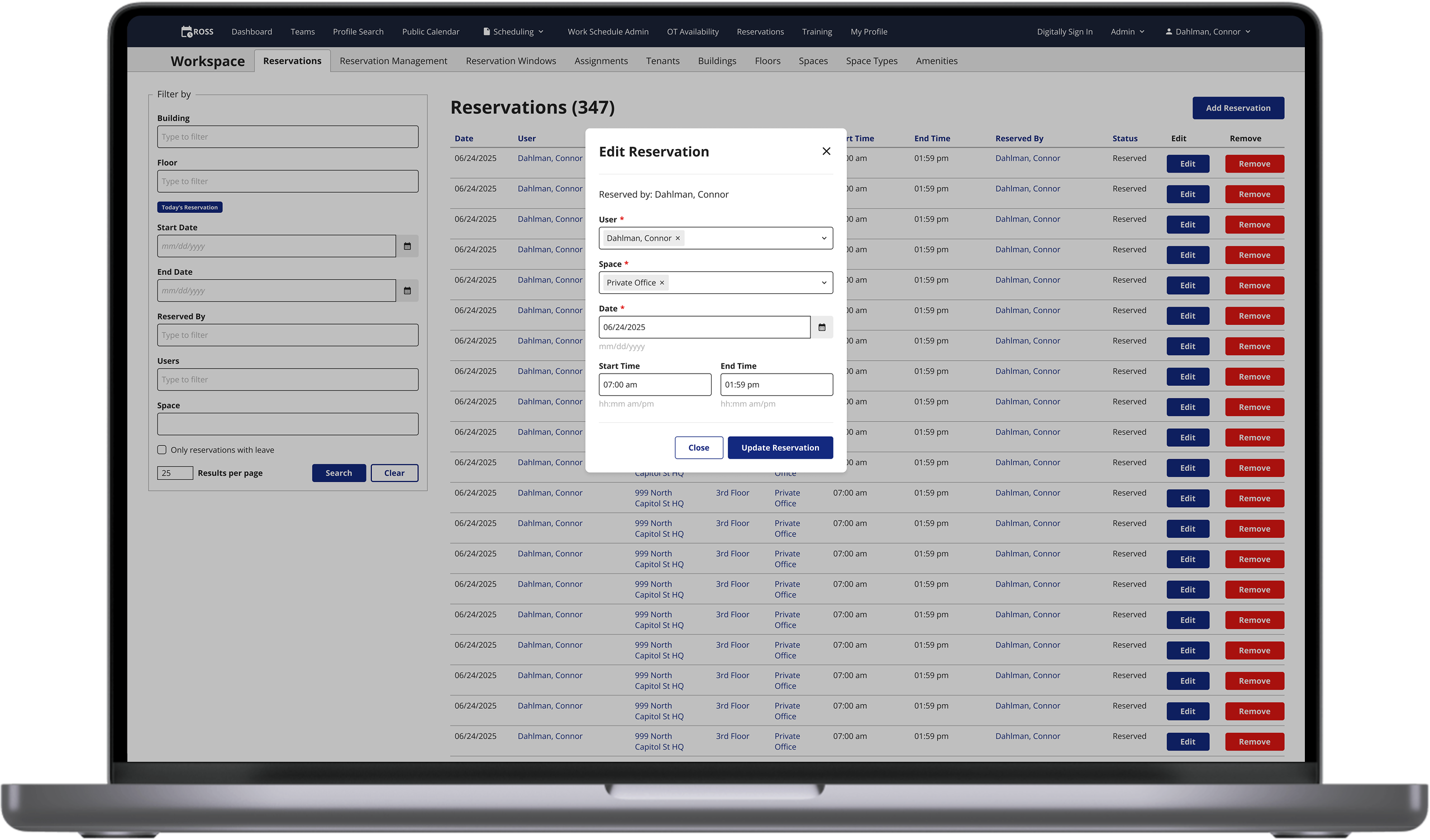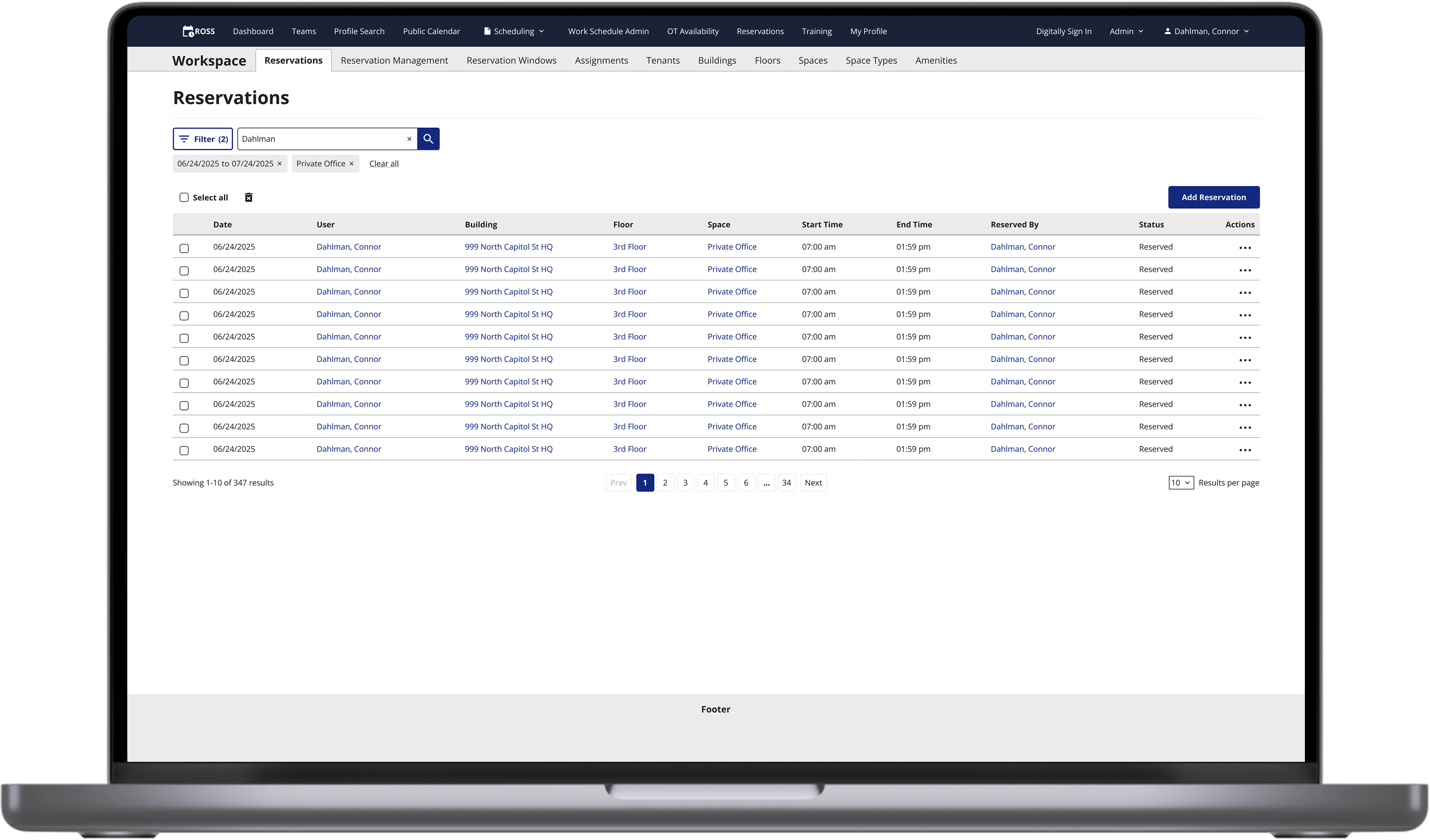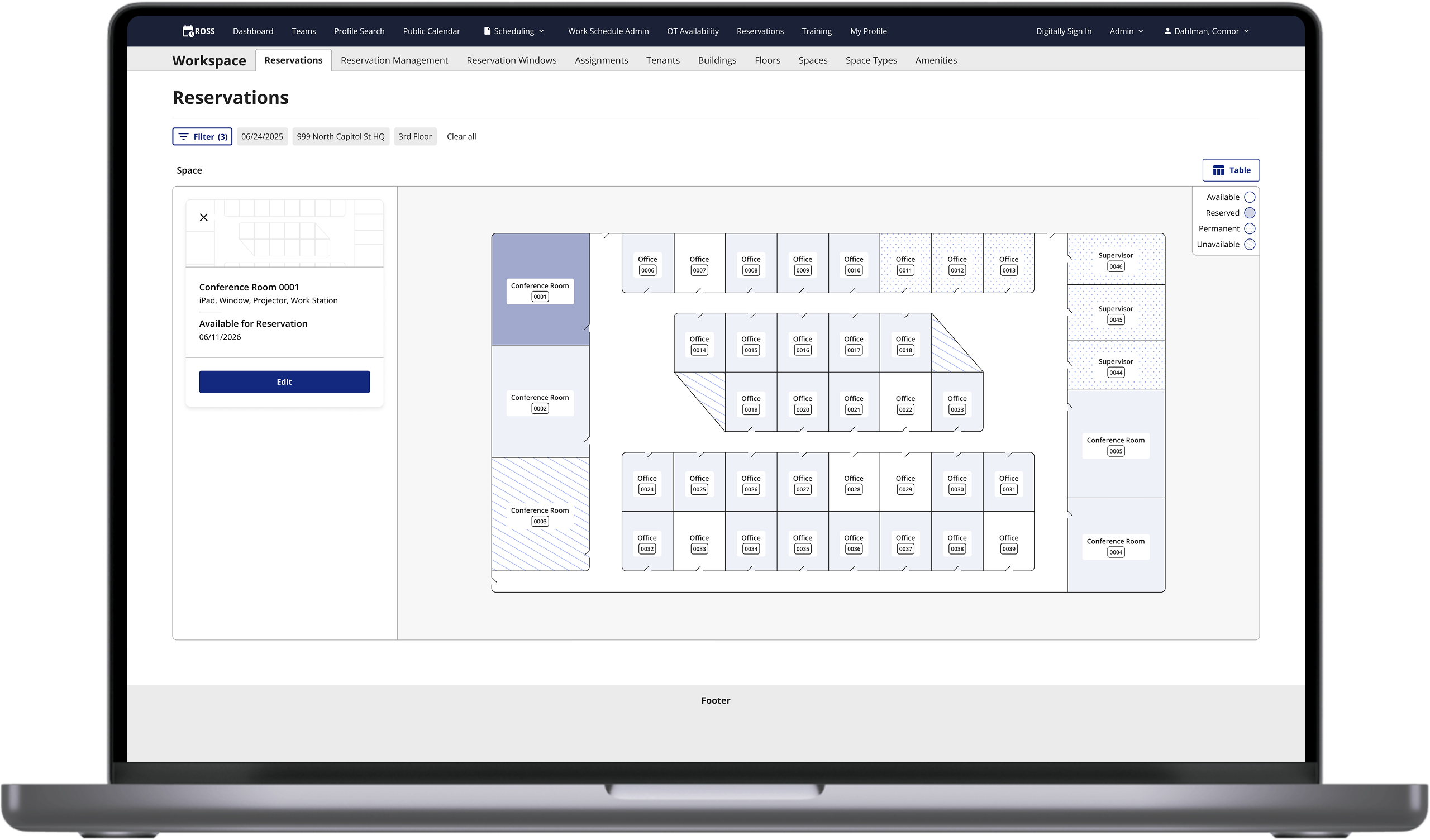 Creating a map view for a table of reserved and available office spaces.